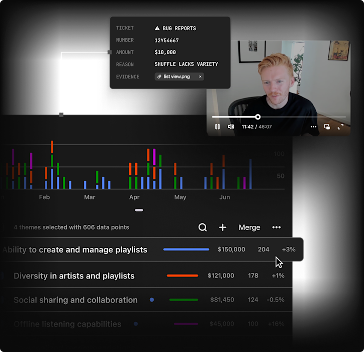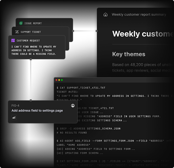 Unify feedback across GTM, CX, and Product. Let AI surface the signals that matter. Instantly create evidence-backed tickets, PRDs, prototypes, and more.