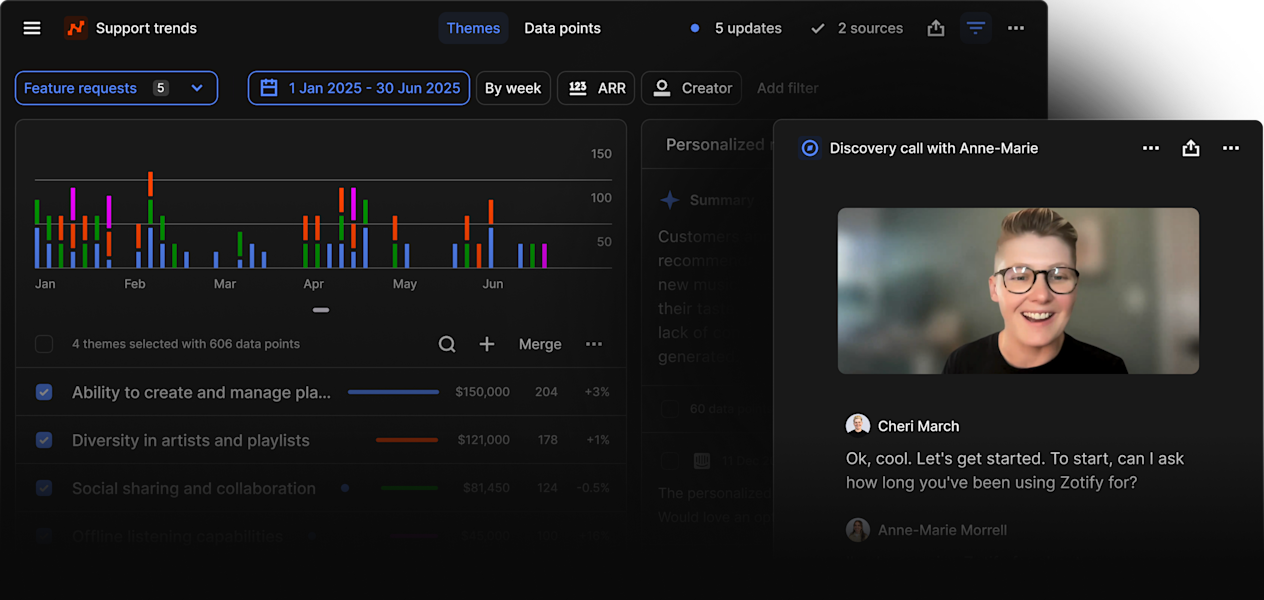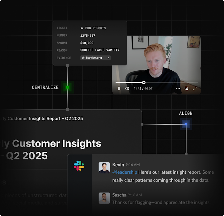Transform customer calls, interviews, feedback, surveys, usability tests, and docs into intelligent action. The AI-native platform built for continuous product innovation.