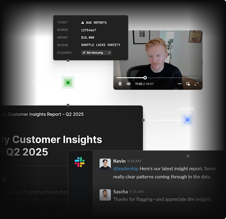 Unify feedback across GTM, CX, and Product. Let AI surface the signals that matter. Instantly create evidence-backed tickets, PRDs, prototypes, and more.