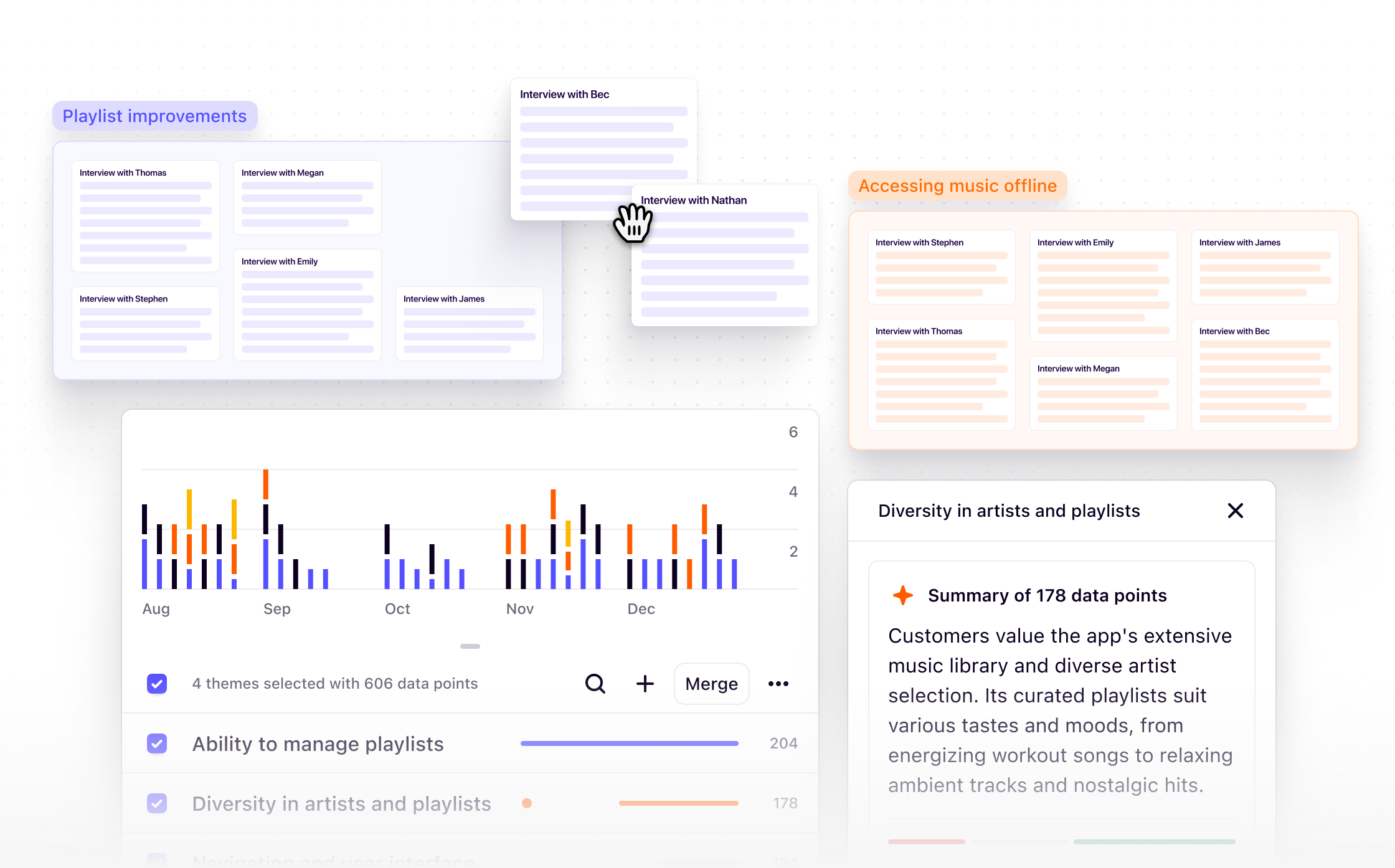 While general-purpose AI tools offer broad capabilities, they often lack the depth required for effective customer intelligence. Developing custom solutions with these tools can demand significant time, resources, and specialized expertise. Dovetail provides a ready-to-use, purpose-built platform that streamlines the process and delivers high-quality, actionable insights—saving time and enhancing effectiveness. Speak with our sales team or try it today.