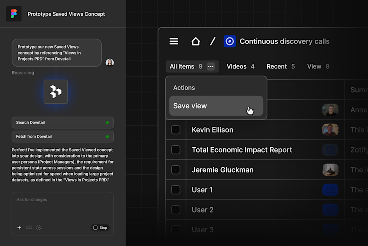 We’re excited to announce our Dovetail connector with Figma Make. Now you can easily leverage customer intelligence when prototyping without needing to switch context.