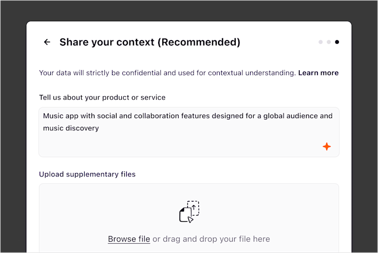 Some mentioned sharing context on their business model and competitors they wanted to monitor, whereas others wanted to upload glossary files and documents.