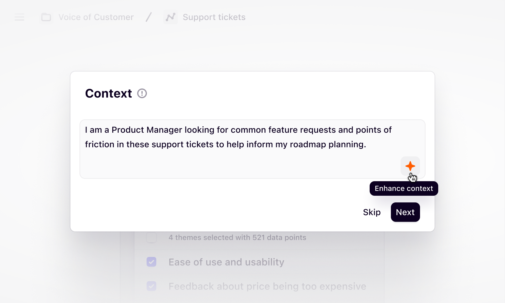 Dovetail’s Lead Product Designer, Jess Pang, shares how she and the team evolved Channels’ topics model and improved theme relevancy, with three new feature updates: a simplified onboarding flow, context prompting, and topic generation based on customer prompt and data.