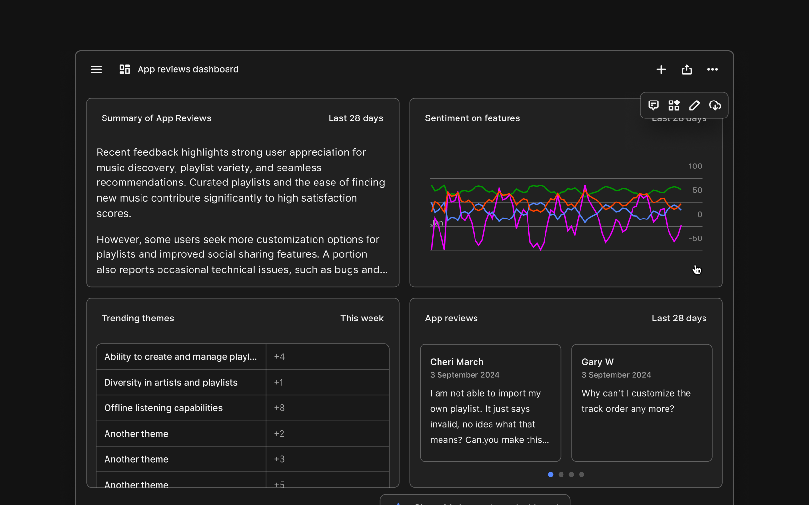In the past, to tackle a project like this, Eleanor would have had to embark on a painstaking and manual data-gathering quest. She’d have to dive into customer support tickets, read through interview transcripts from the UX research team, sift through CX survey results, and comb through social media comments. This process was time-consuming and often led to missed insights or cherry-picked data that only served to deepen the divide between her teams.