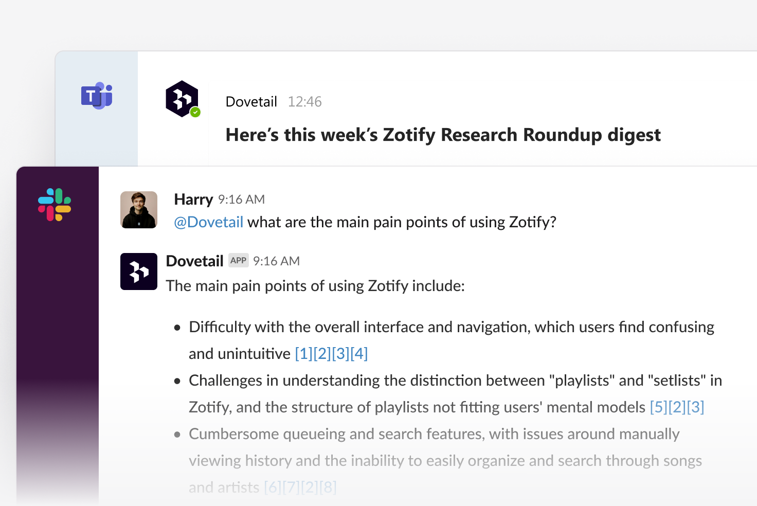Our Enterprise plan now includes Ask Dovetail for unlimited chat queries in Slack and Teams. Features like folders and user roles (including free viewers) are now only available on Enterprise. Enterprise also has advanced AI features like custom vocabulary and translation; global tags, fields, and templates; as well as redaction, access control, custom data retention, and dozens of other administrative, security, and compliance functionality.