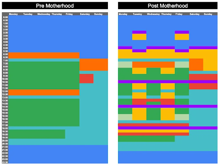 In some ways, being a mom isn’t too different from being a PM - you can have the best-laid plans, but some days the shit hits the fan and you just have to roll with it. I could rant about how parenting comes with endless housework or how breastfeeding is almost a part-time job or how without flexibility I’d drown... but that’s not productive, so instead here is a visual that shows how my life has changed.