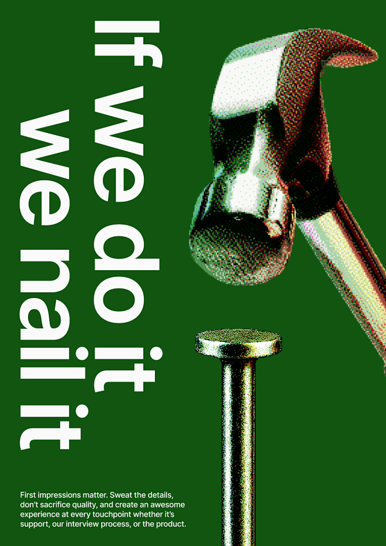 First impressions matter. Sweat the details, don't sacrifice quality, and create an awesome experience at every touchpoint whether it's support, our interview process, or the product.