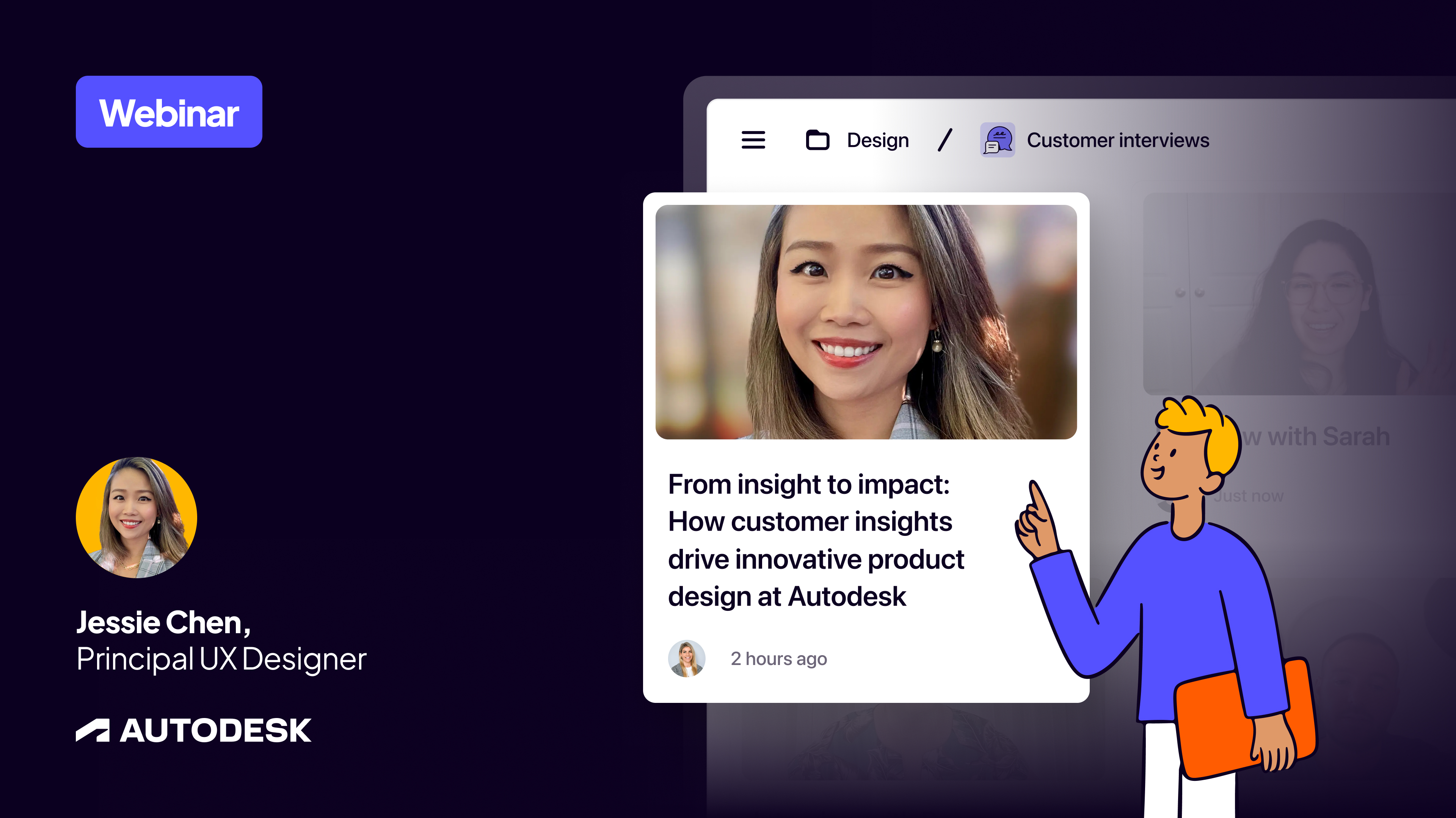 Join Jessie Chen, Principal UX Researcher at Autodesk, as she shares how her team integrates customer insights at various stages of their design workflows to deliver differentiated solutions. This session will be a case study with practical examples of how you can blend foundational design principles with customer research to build and execute strategies that result in business impact.