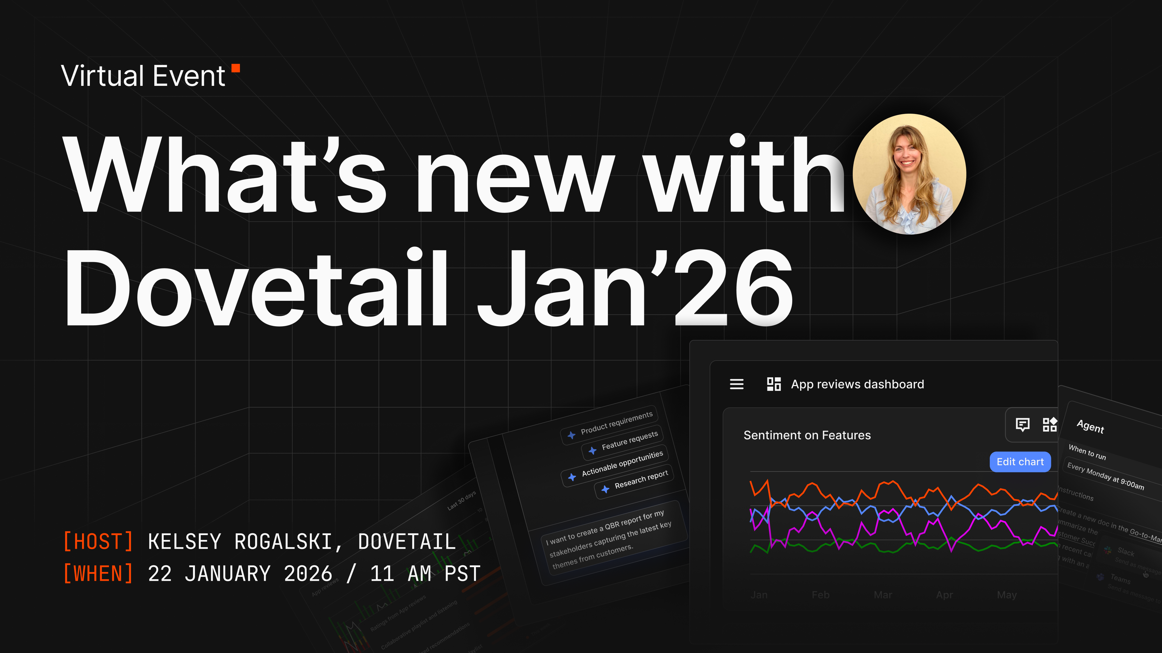 - **Plus: **Recent quality-of-life improvements across the platform. Perfect for product managers, designers, researchers and anyone turning customer feedback into action. Live demos, practical tips, and Q&A included.