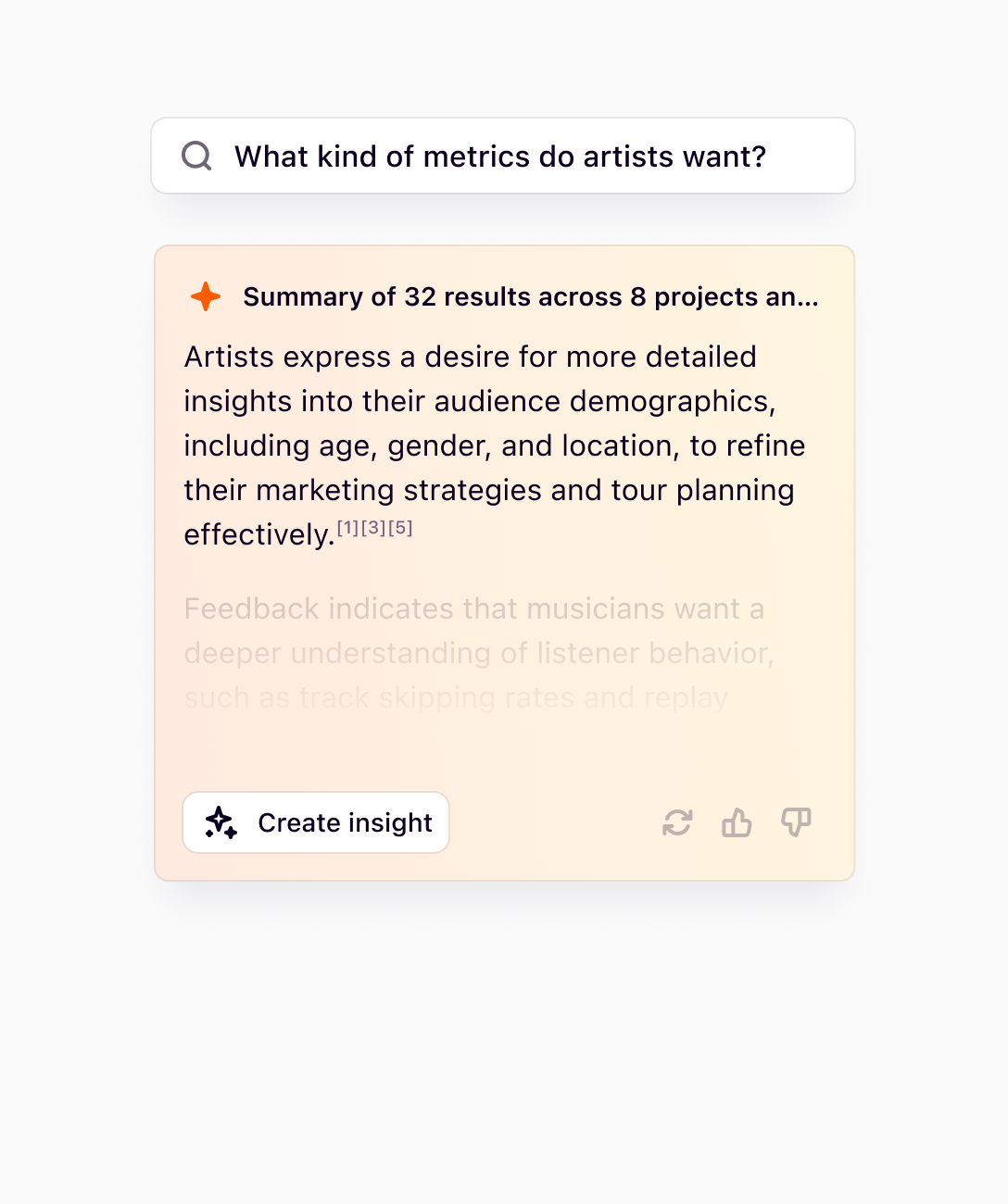 Find key information with global semantic search across all customer insights. Ask questions in-context using AI-powered chat built into your workspace.