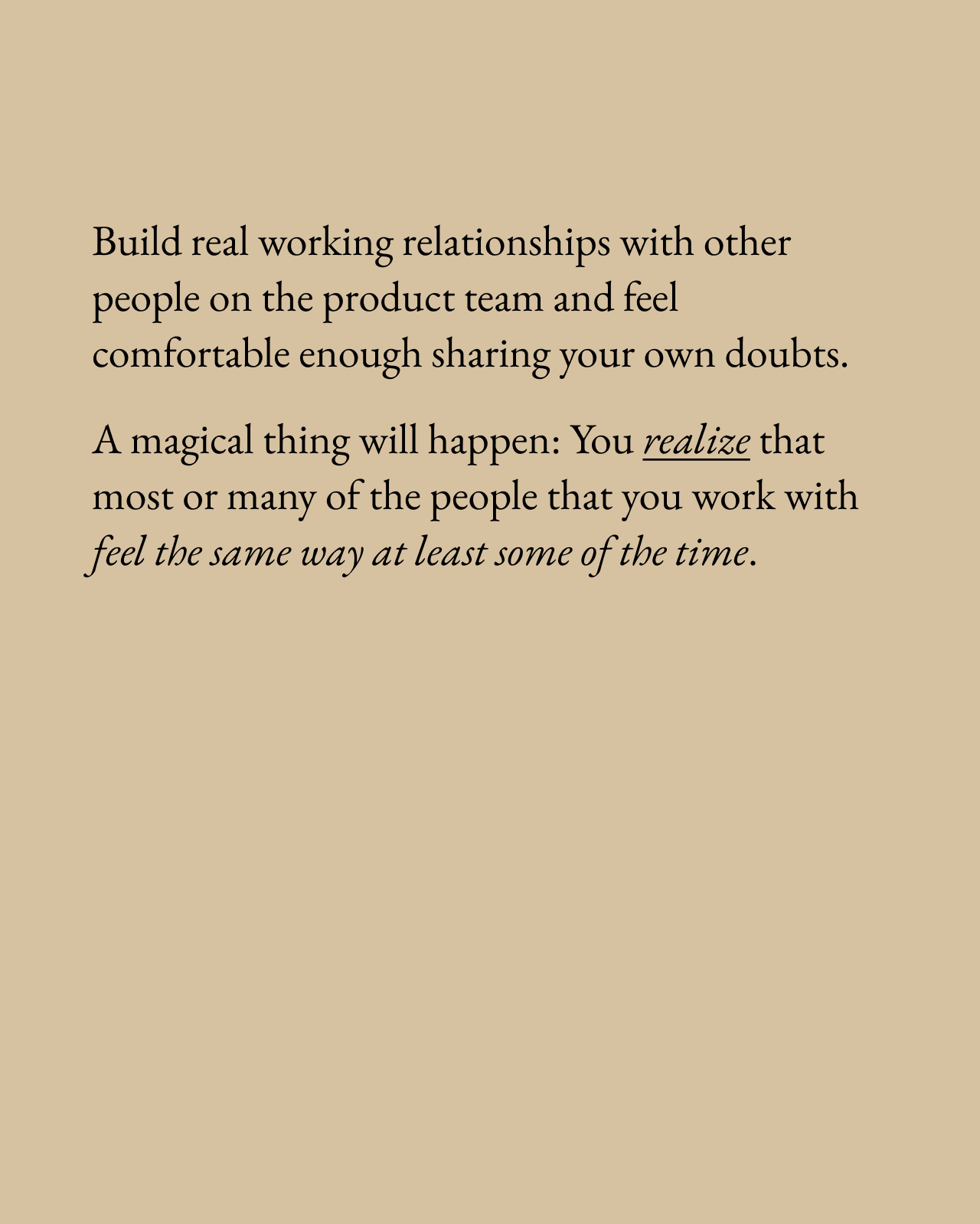 Product development is all about investing resources before you get results, leading initiatives based on your interpretations of data and intuition. There’s simply no way that you’re the only one on the product team battling feelings that they’re not cut out for their role.