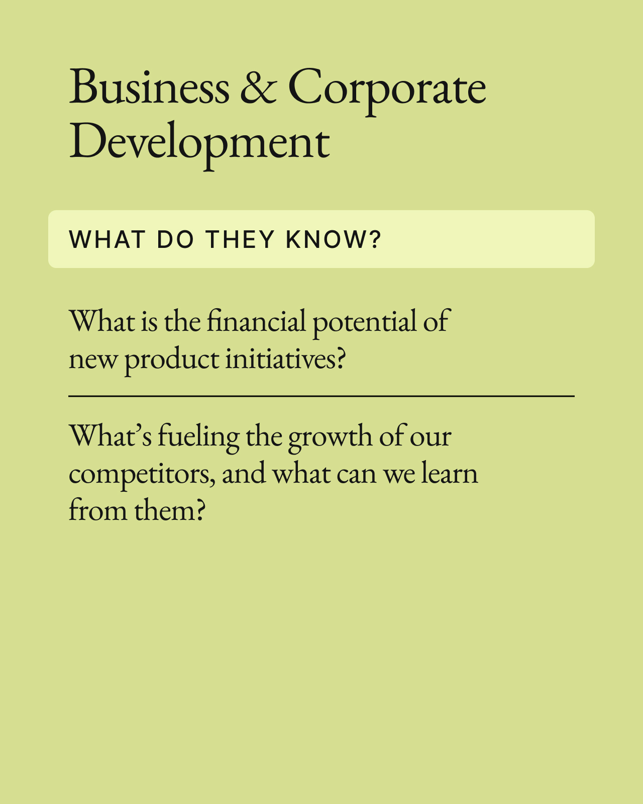 When making product decisions, you need to go question by question and find the right address. It’s not about going up the ladder and assuming that as you go up, people know the answers to the specific questions at hand.