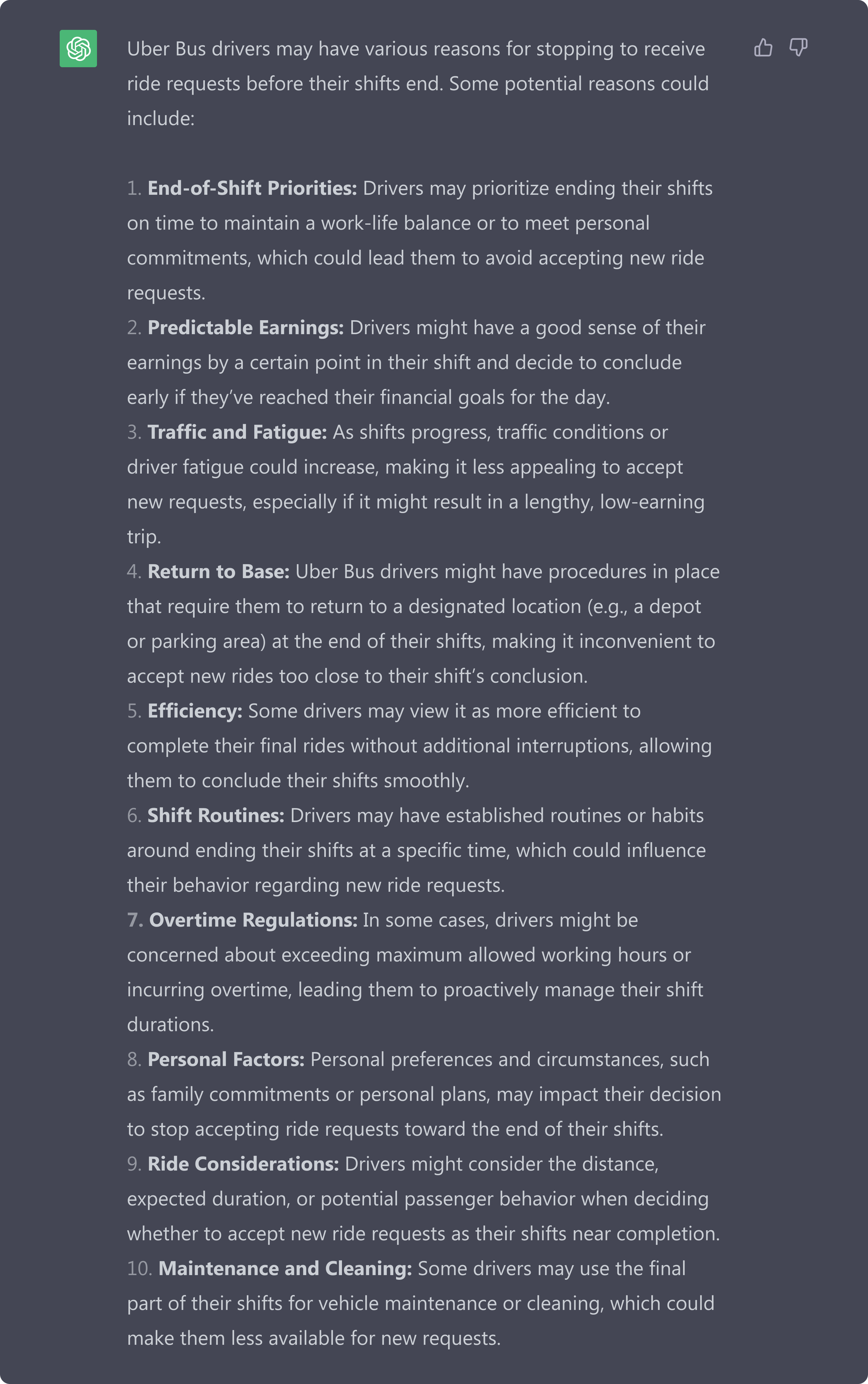 “Some Uber Bus drivers stop receiving requests one hour before their shift ends so they can finish on time.”