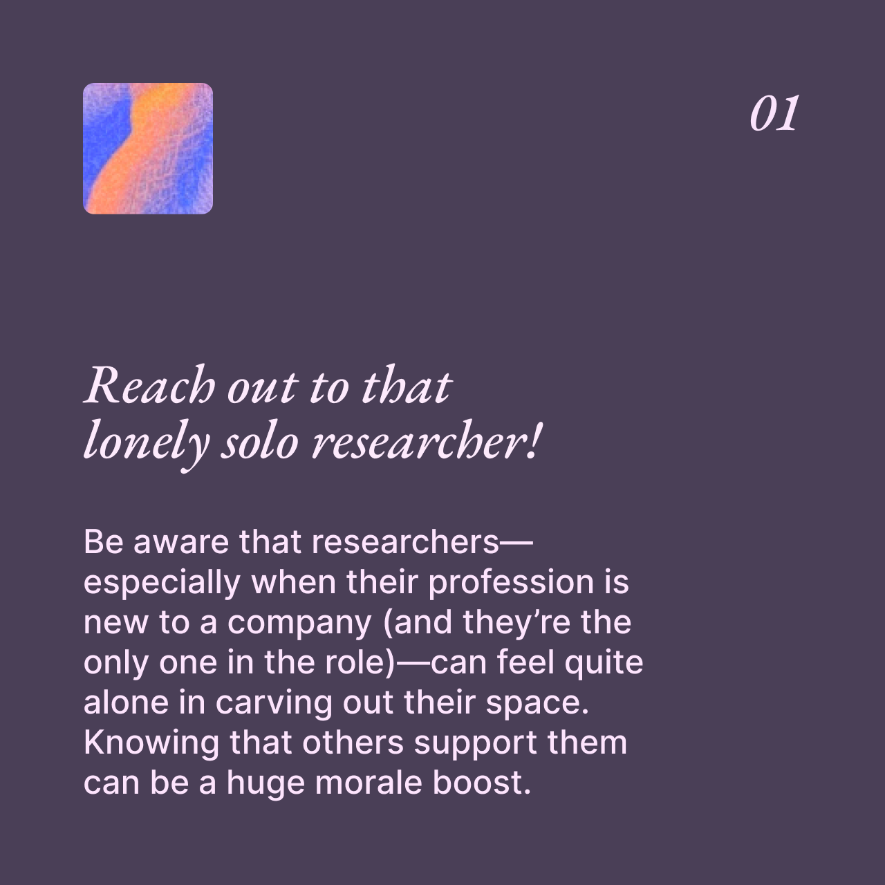 Non-researchers: You might be looking forward to your organization bringing on their first researcher. My wish is for you to feel employed to reach out to them for what could be a life-changing collaboration.