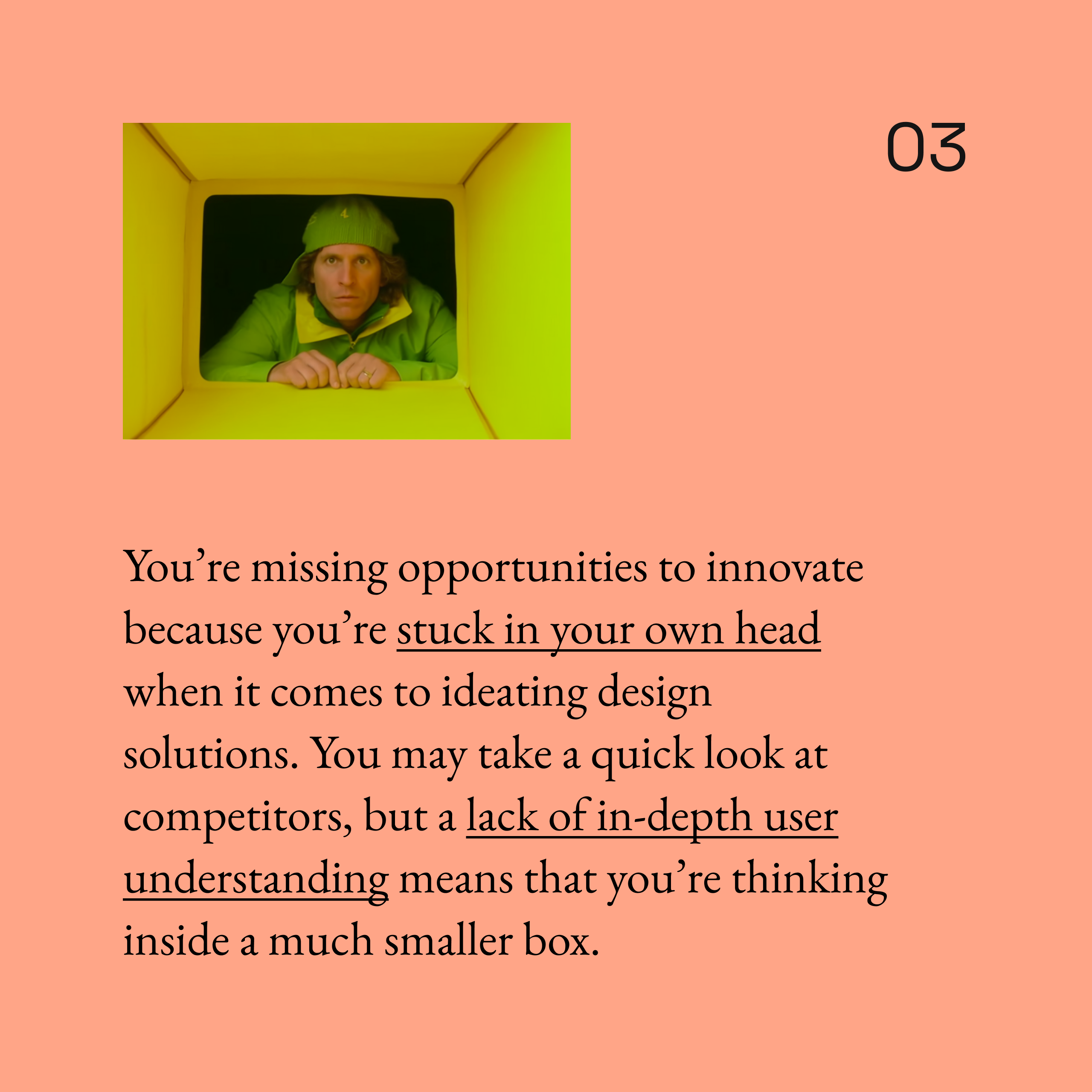 In my experience, the design community has total awareness of why they need real user insights to do their best work—but many individual designers feel forced to put it on hold due to organizational pacing.