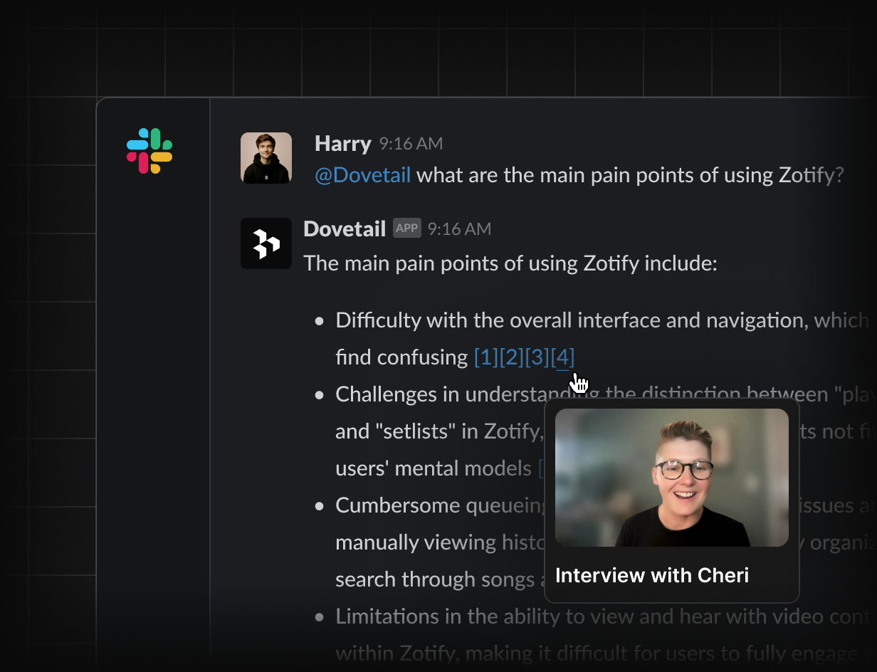 Dovetail lets teams self-serve insights, reducing repeated requests so researchers can focus on impactful work.