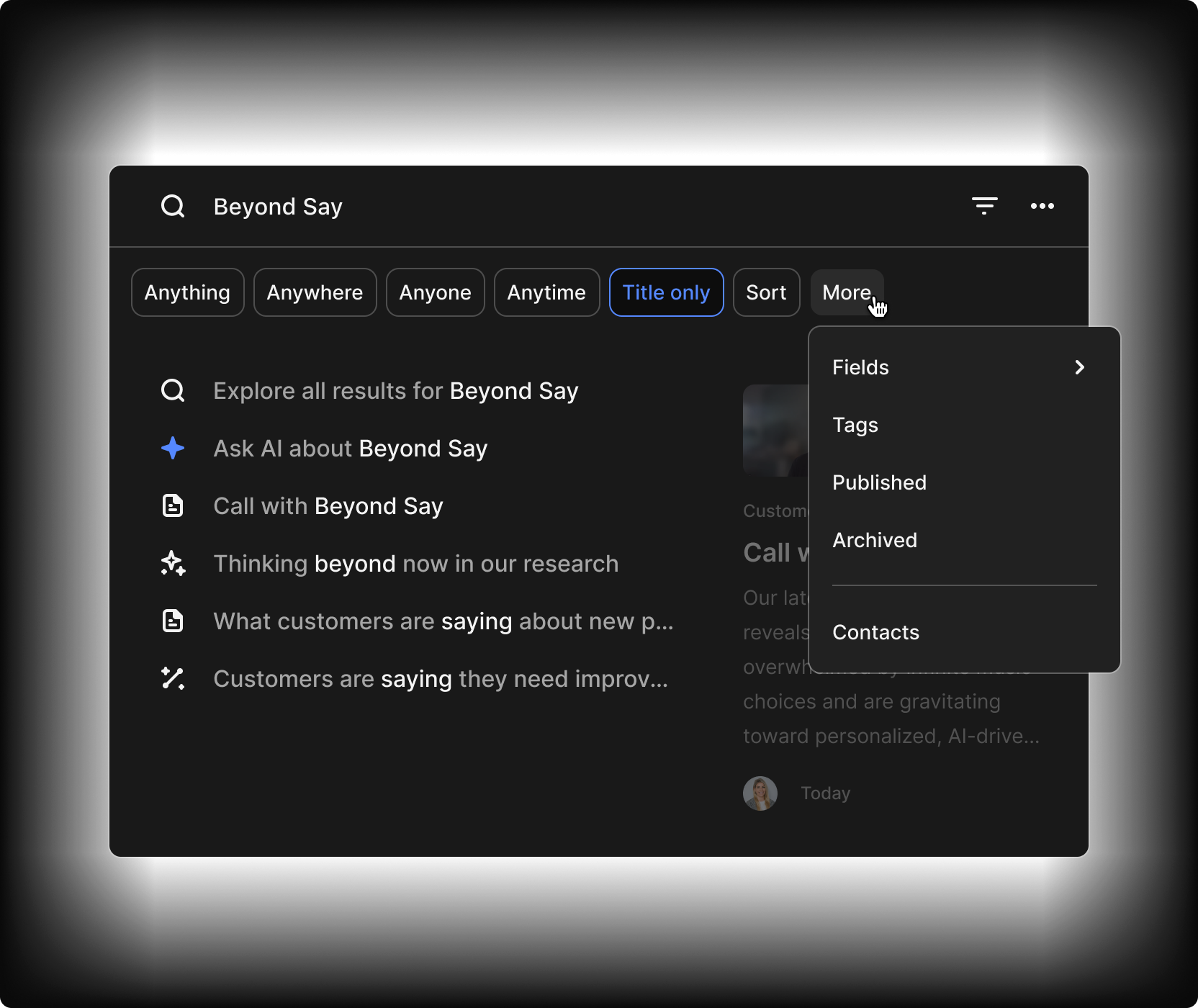 Combine precision search with AI-powered context to uncover the most relevant results.